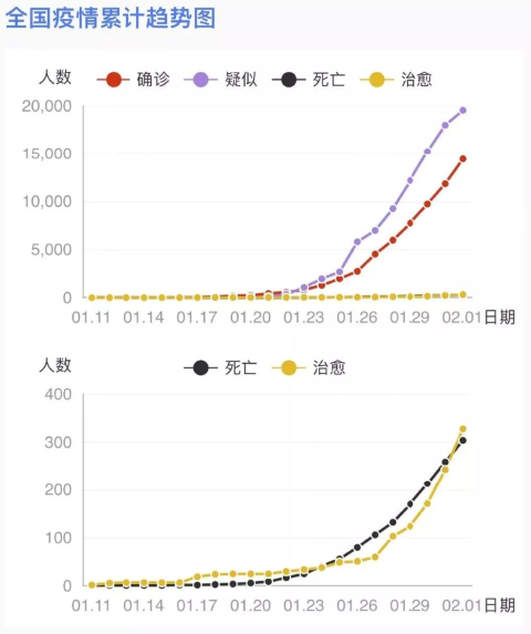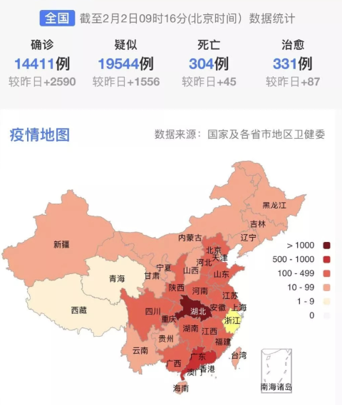 國(guó)家衛(wèi)生健康委收到31個(gè)?。ㄗ灾螀^(qū)、直轄市)和新疆生產(chǎn)建設(shè)兵團(tuán)累計(jì)報(bào)告確診病例14380例,現(xiàn)有重癥病例2110例,累計(jì)死亡病例304例,累計(jì)治愈出院病例328例,共有疑似病例19544例。