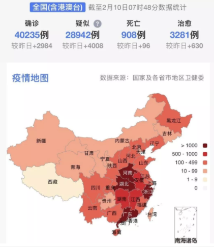 據(jù)31個?。ㄗ灾螀^(qū)、直轄市)和新疆生產(chǎn)建設(shè)兵團報告,現(xiàn)有確診病例35982例(其中重癥病例6484例),累計治愈出院病例3281例,累計死亡病例908例,累計報告確診病例40171例(湖北核減87例,江西、甘肅各核減1例),現(xiàn)有疑似病例23589例。累計追蹤到密切接觸者399487人,尚在醫(yī)學(xué)觀察的密切接觸者187518人。