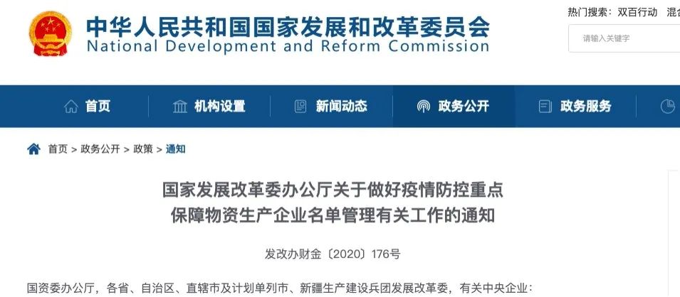 3月2日,發(fā)改委官網(wǎng)發(fā)布《國家發(fā)展改革委辦公廳關于做好疫情防控重點保障物資生產(chǎn)企業(yè)名單管理有關工作的通知》(以下簡稱《通知》),就納入名單管理的企業(yè)可以享受的稅收政策、企業(yè)申報要求、申報流程、名單管理等工作做出具體要求。