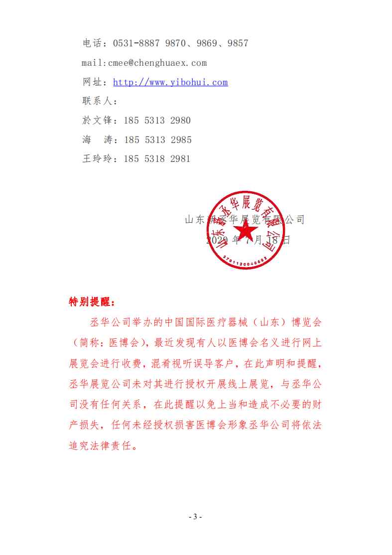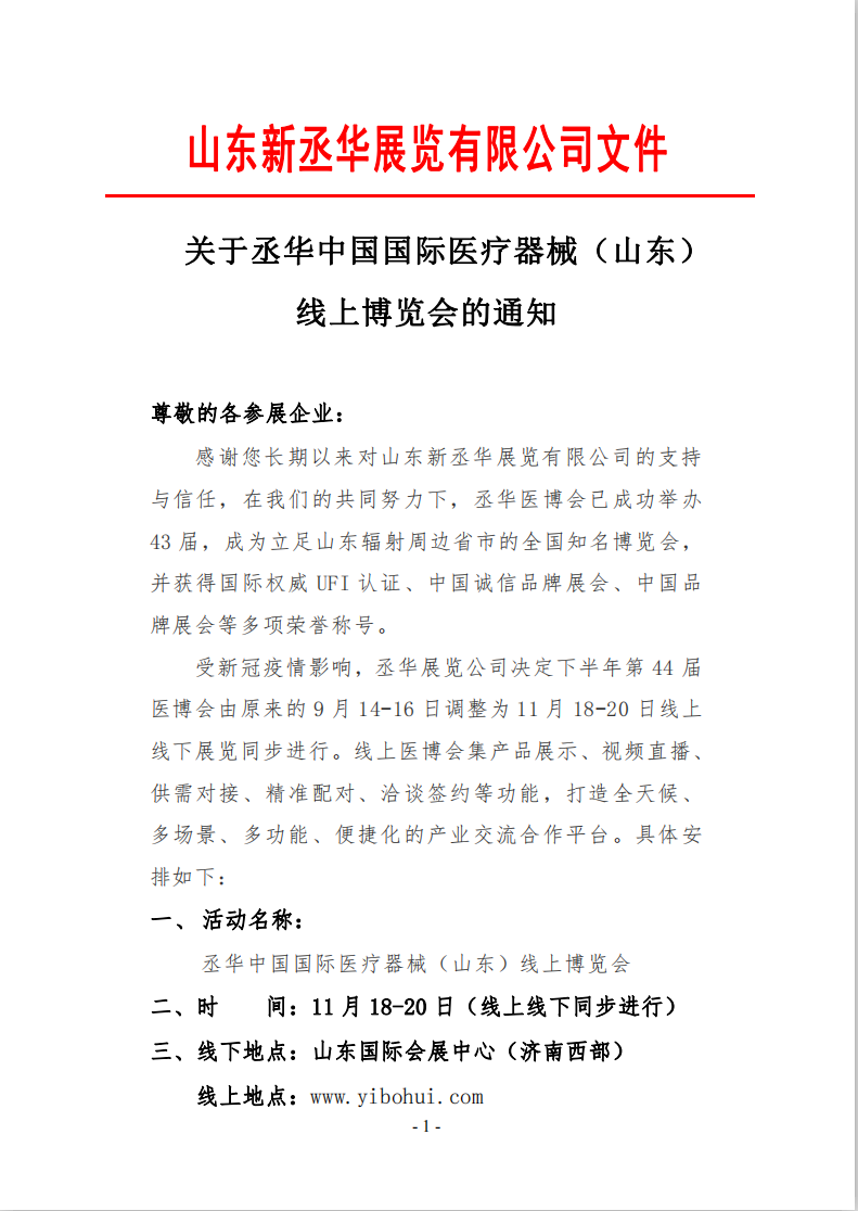 關(guān)于丞華中國(guó)國(guó)際醫(yī)療器械(山東) 線(xiàn)上博覽會(huì)的通知