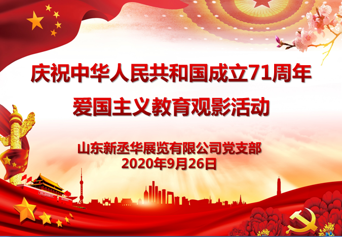 9月26日下午,山東新丞華展覽有限公司黨支部開展慶祝新中國(guó)成立71周年愛(ài)國(guó)主義教育觀影活動(dòng),組織收看愛(ài)國(guó)主義教育影片《決勝時(shí)刻》,活動(dòng)由黨支部副書記侯兆芳主持,全體黨員、預(yù)備黨員和入黨積極分子10余人參加活動(dòng)。