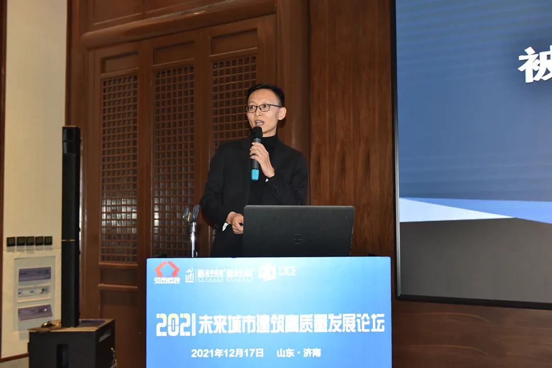山海大象綠色建筑科技有限公司技術(shù)主任桑維林就“輕鋼裝配式被動(dòng)式建筑項(xiàng)目總結(jié)”現(xiàn)場進(jìn)行分享。