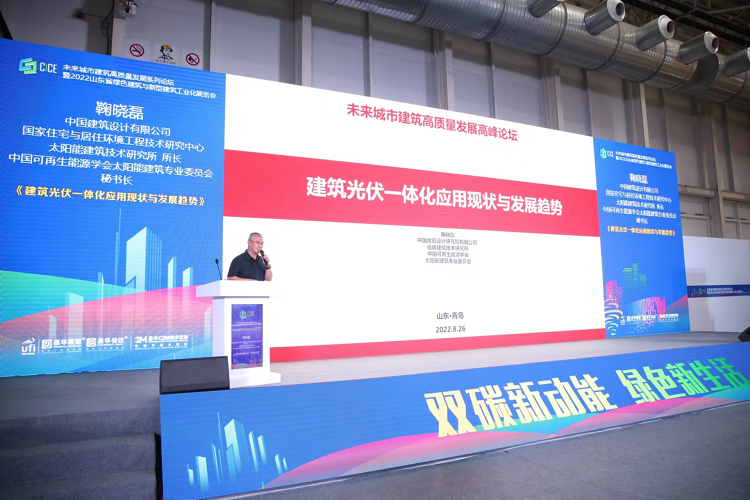 中國(guó)建筑設(shè)計(jì)有限公司國(guó)家住宅與居住環(huán)境工程技術(shù)研究中心太陽(yáng)能建筑技術(shù)研究所鞠曉磊所長(zhǎng)針對(duì)《建筑光伏一體化應(yīng)用現(xiàn)狀與發(fā)展趨勢(shì)》這一內(nèi)容,就建筑和光伏一體化應(yīng)用所具有的優(yōu)點(diǎn),以及建筑光伏一體化相關(guān)技術(shù)在國(guó)內(nèi)外的發(fā)展情況和未來(lái)發(fā)展趨勢(shì)進(jìn)行了詳細(xì)介紹和說(shuō)明。