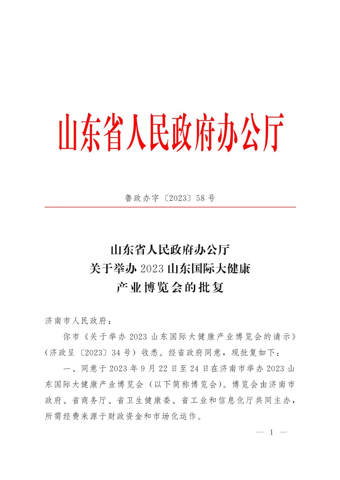 5月29日,山東省人民政府辦公廳正式發(fā)布批復(fù),同意于2023年9月22日至24日在濟南市舉辦2023山東國際大健康產(chǎn)業(yè)博覽會。
