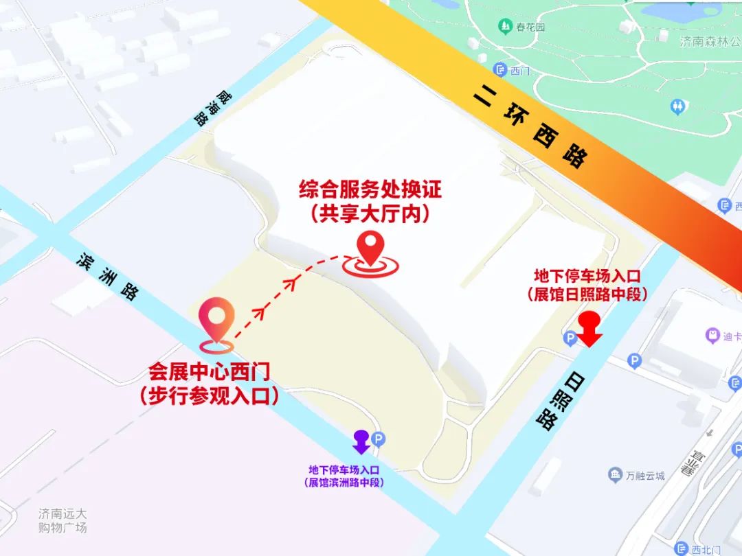 (會(huì)展中心西門(mén)為步行出入口,所有自駕車(chē)輛請(qǐng)從日照路或濱洲路地下停車(chē)場(chǎng)入場(chǎng))