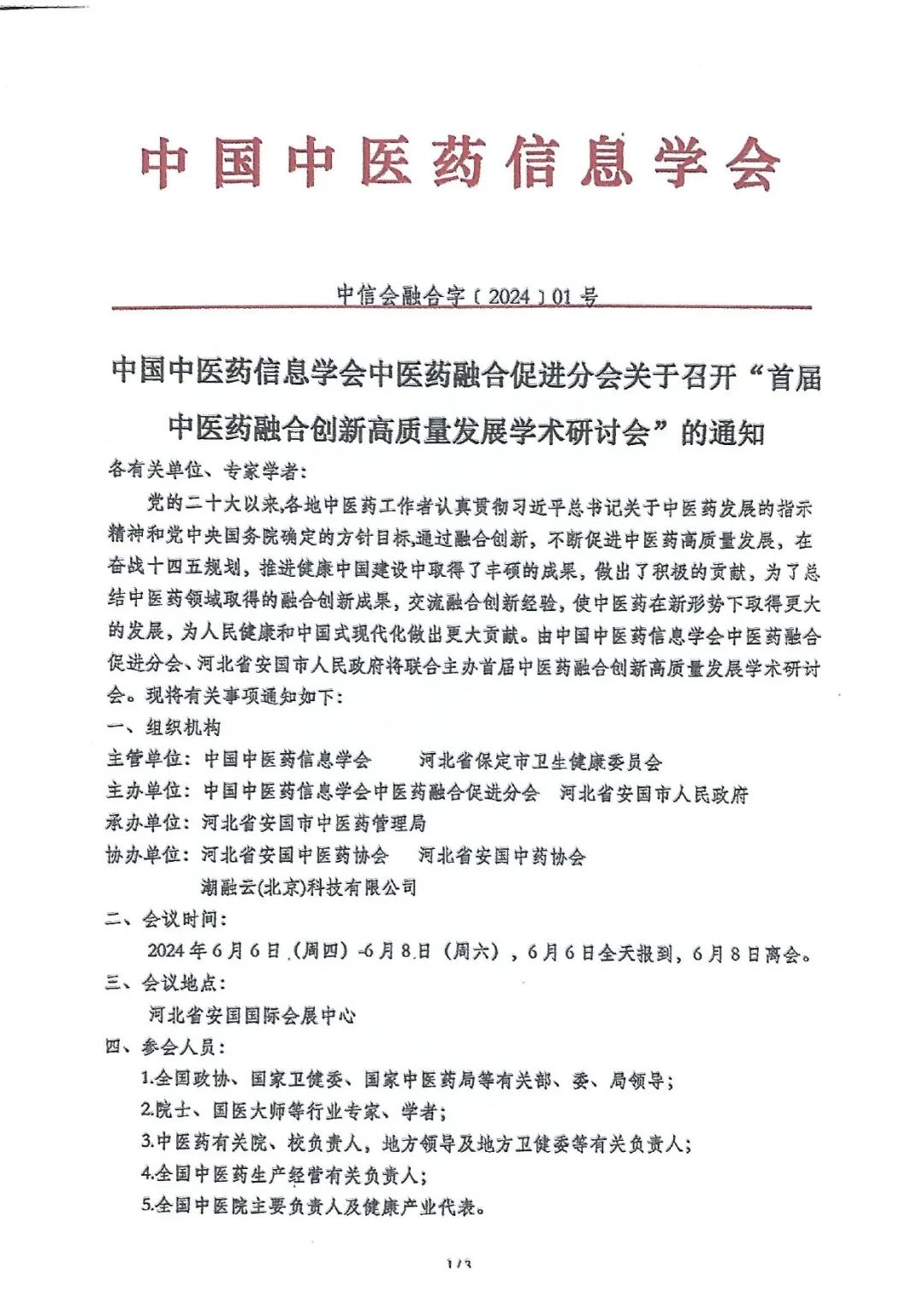 中國中醫(yī)藥信息學會中醫(yī)藥融合促進分會關(guān)于召開“首屆中醫(yī)藥融合創(chuàng)新高質(zhì)量發(fā)展學術(shù)研討會”的通知