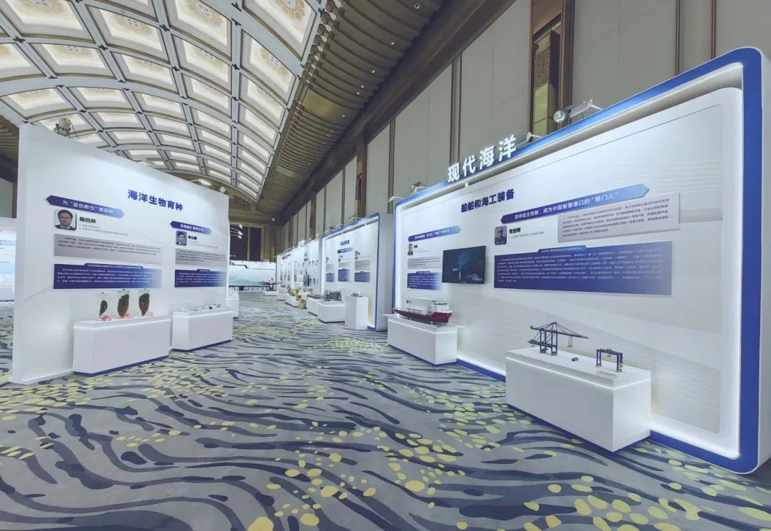 據(jù)了解,本次“人才引領發(fā)展成果展”遴選了全省40組高層次人才取得的科研創(chuàng)新成果參展,展品主要分為先進制造、現(xiàn)代海洋、現(xiàn)代農業(yè)三大類,通過實物、圖片等形式,高度濃縮人才科技創(chuàng)新、文化傳承的成就。從序廳到展示廳,無論是空間造型、色彩搭配,還是展品的擺放和照明設計,每一個細節(jié)都經(jīng)過精心雕琢,共同營造出了一種舒適大氣的空間氛圍,和諧而寧靜,猶如在緩緩“講述”著我省人才發(fā)展的故事,讓與會者在欣賞展品的同時,也能感受到美的熏陶和心靈的震撼。